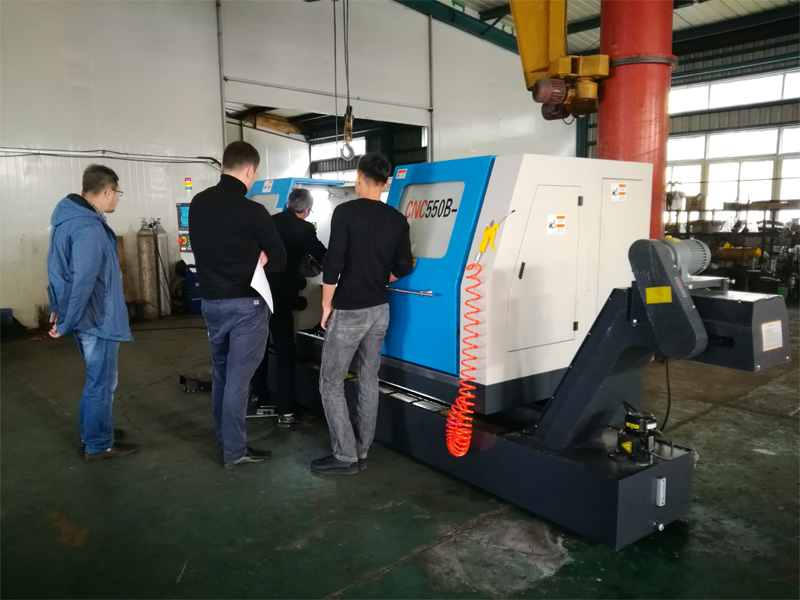 CNC550B-1 is HAISHU company customized slant bed CNC lathe for the Russian customers.Main configuration: Siemens 828D system, Taiwan 8 stations turret,British Renishaw tool auto-checking instrument, hydraulic chuck, hydraulic tailstock.