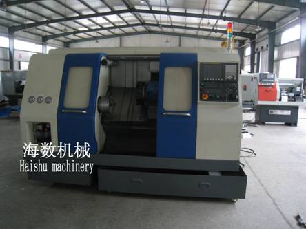 Taian Haishu Machinery Co., Ltd. continuing commitment to product innovation, in a horizontal flat bed CNC lathe on the basis of development and innovation, but also successfully developed a CNC (B-1) series of horizontal slant bed CNC lathes. Here is CNC400B-1 and CNC500B-1 slant bed CNC lathe pictures and product introduction. The product is cost-effective, processing a wide range of high efficiency, now in volume production, and exports to