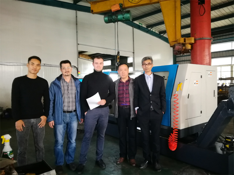 CNC550B-1是海數(shù)公司為俄羅斯客戶訂制的斜床身數(shù)控車床。主要特點(diǎn)是配置高、精度高、效率高。主要配置:西門子828D系統(tǒng)、臺(tái)灣8工位刀塔、英國(guó)雷尼紹對(duì)刀儀、液壓卡盤、液壓尾座、大直徑中心支架。大加工直徑500mm,大加工長(zhǎng)度1500mm,適合于盤類件和軸類件的高效精密加工。該斜床身數(shù)控車床一次性通過用戶驗(yàn)收,受到俄羅斯客戶的好評(píng)。詳情參見www.furrfeed.com