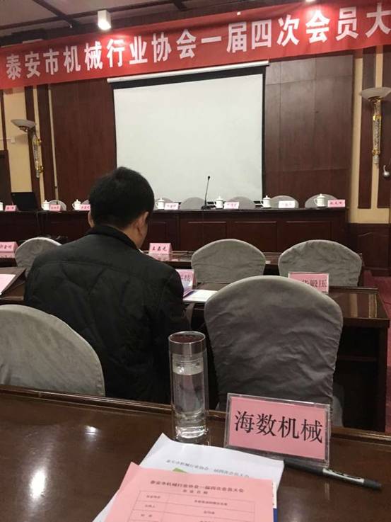 泰安市機械行業(yè)協(xié)會一屆四次會員大會于2015年12月6日召開,泰安海數(shù)機械制造有限公司作為理事單位參加了會議。